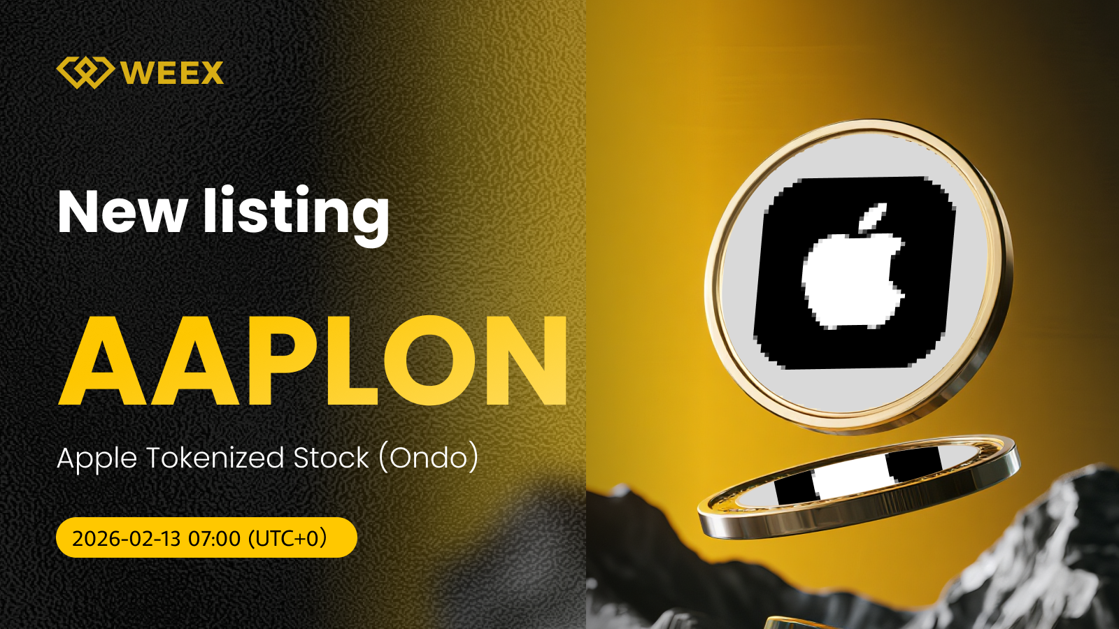 يسرنا أن نعلن أن تداول AAPLON/USDT أصبح متاحًا الآن على منصة WEEX. تفاصيل القائمة أدناه: