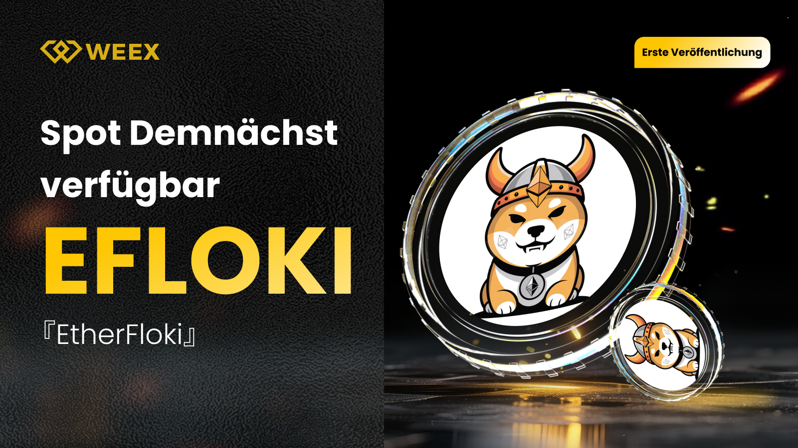 Wir freuen uns, bekannt zu geben, dass EtherFloki (EFLOKI) bald auf dem WEEX Spot-Handelsmarkt verfügbar sein wird. Bitte achten Sie auf die nachfolgende Ankündigung für weitere Details!