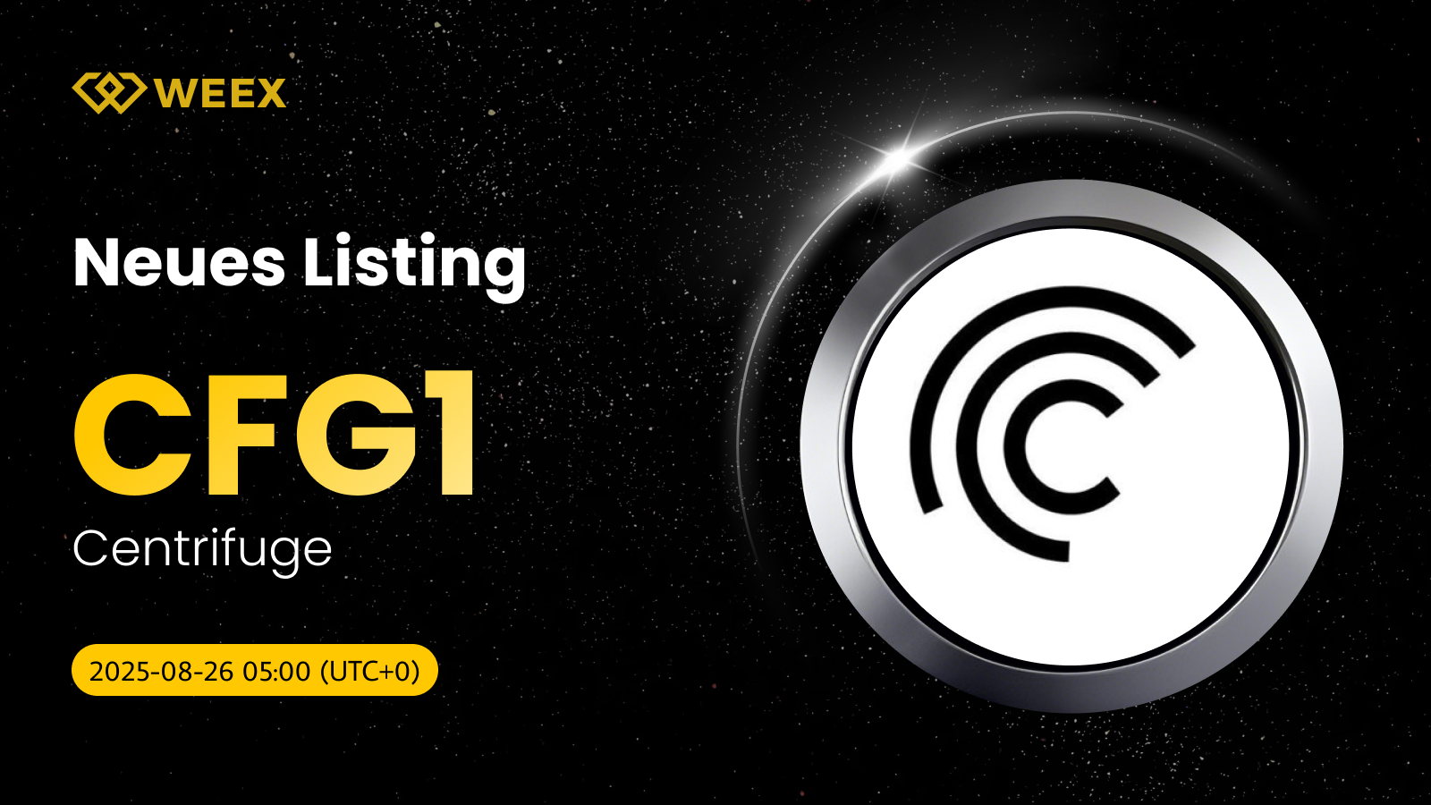 Wir freuen uns, Ihnen mitteilen zu können, dass Centrifuge (CFG1) jetzt offiziell im WEEX Spothandel erhältlich ist! Ab sofort können Sie CFG1 / USD einfach auf der WEEX-Plattform handeln. Einzelheiten sind wie folgt: