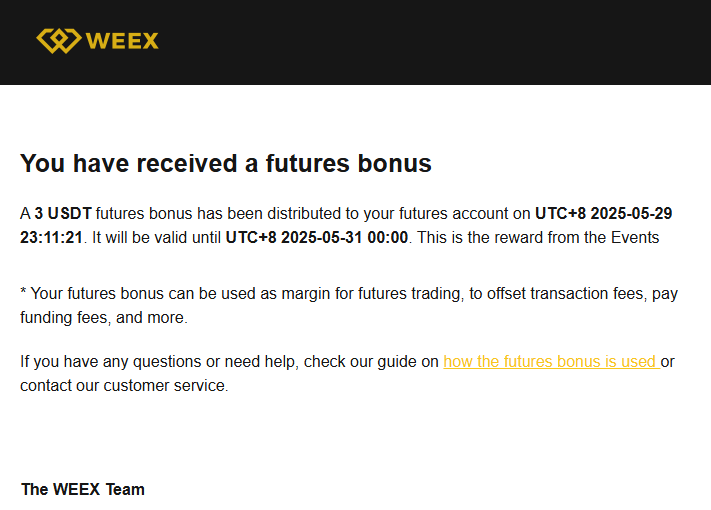 Bono de contratos WEEX recibido ▼