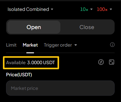 En la página de trading de contratos, en el panel donde realiza las órdenes: la cuenta del par comercial que recibe la bonificación de contratos tendrá la cantidad disponible actualizada ▼