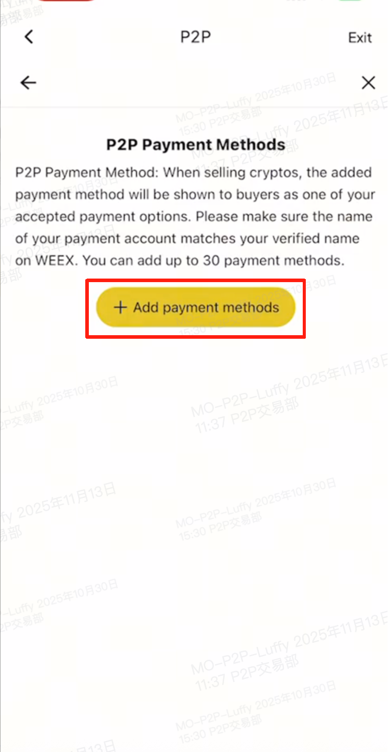 - Solo utilice métodos de pago verificados en su cuenta WEEX que coincidan con su nombre.