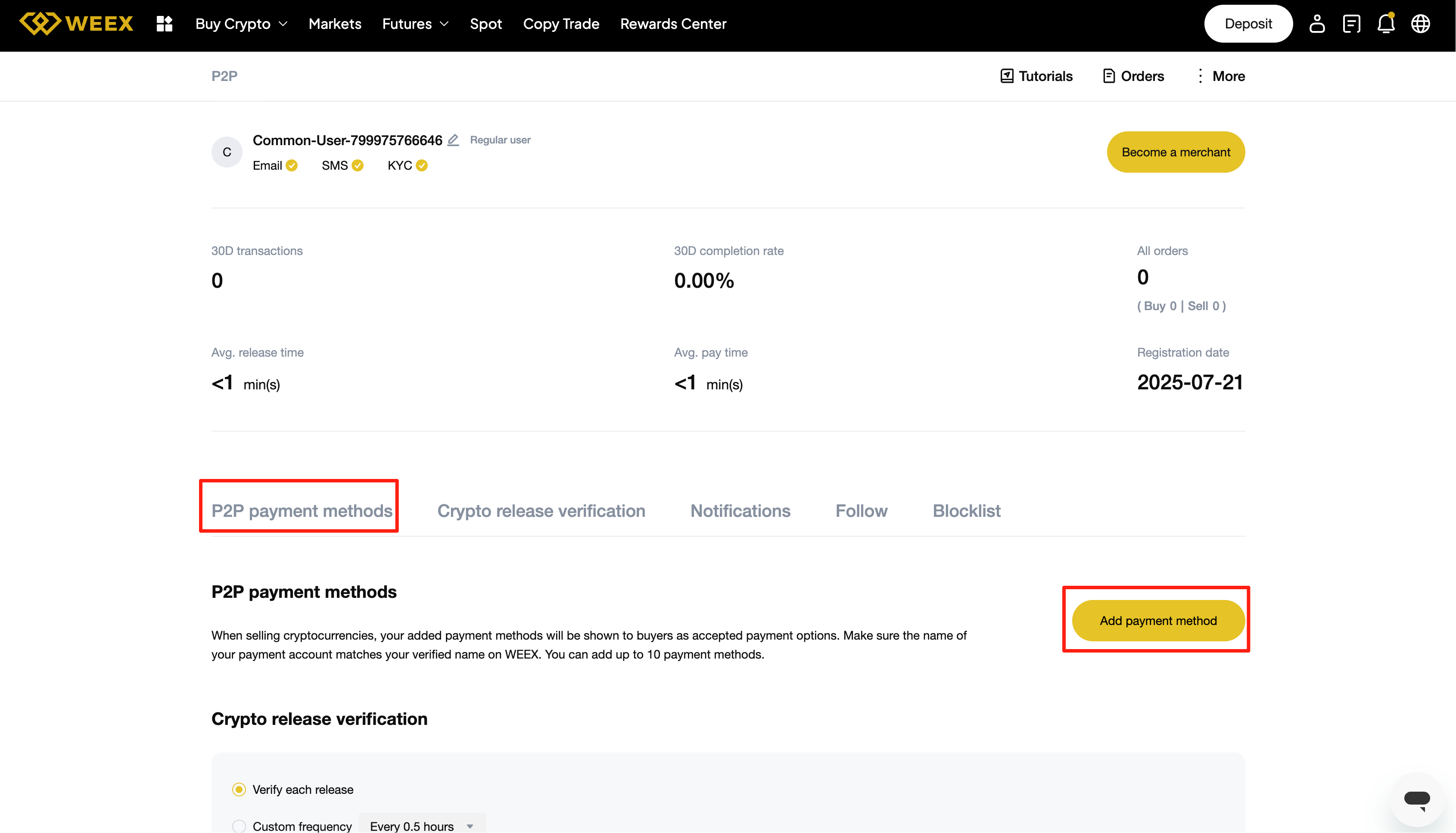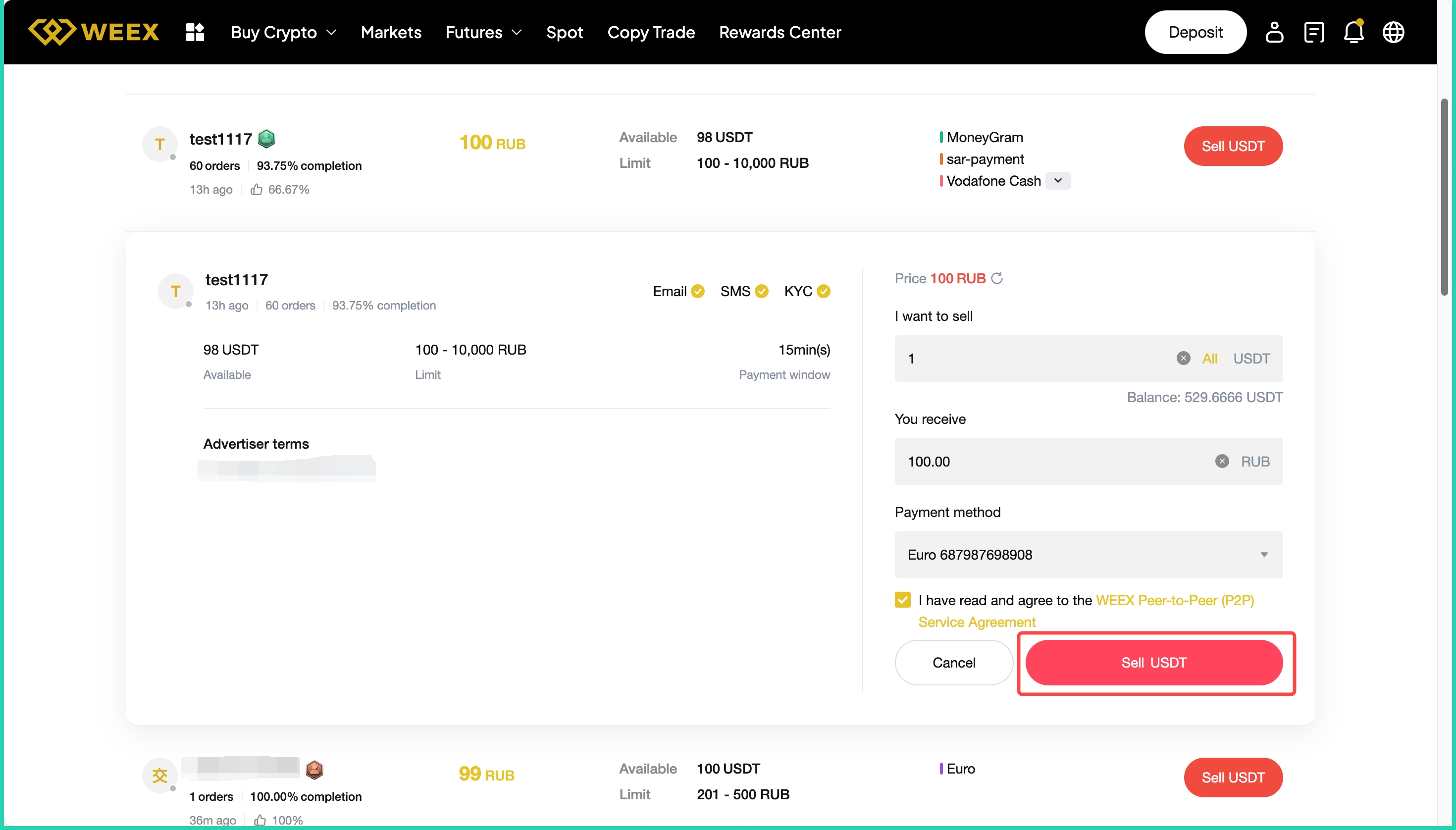 ¿Cómo vender criptomonedas a través de WEEX P2P?