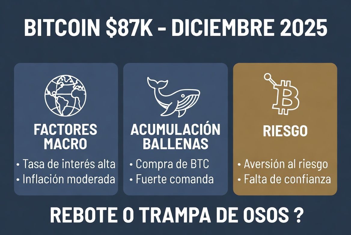 El precio de BTC estabilizó cerca de $87.000-$88.000 en diciembre 2025, con un posible "rango navideño" que atrapa traders, según análisis de AInvest. ¿Rebote o trampa bajista (una falsa subida que luego cae fuerte)? Depende de macro, on-chain y sentimiento.