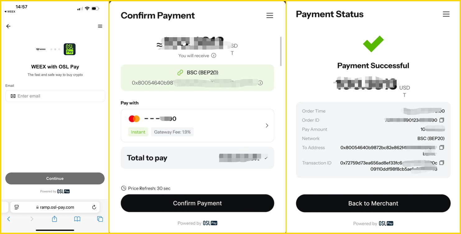 Este es un anuncio general. Es posible que las características o servicios mencionados en el presente documento no estén disponibles en su región. Este servicio es proporcionado por un proveedor de pago de terceros. WEEX no es responsable de procesar estas transacciones.