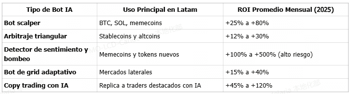 Bots de trading de cripto con IA: Tipos más usados en Latam en 2025