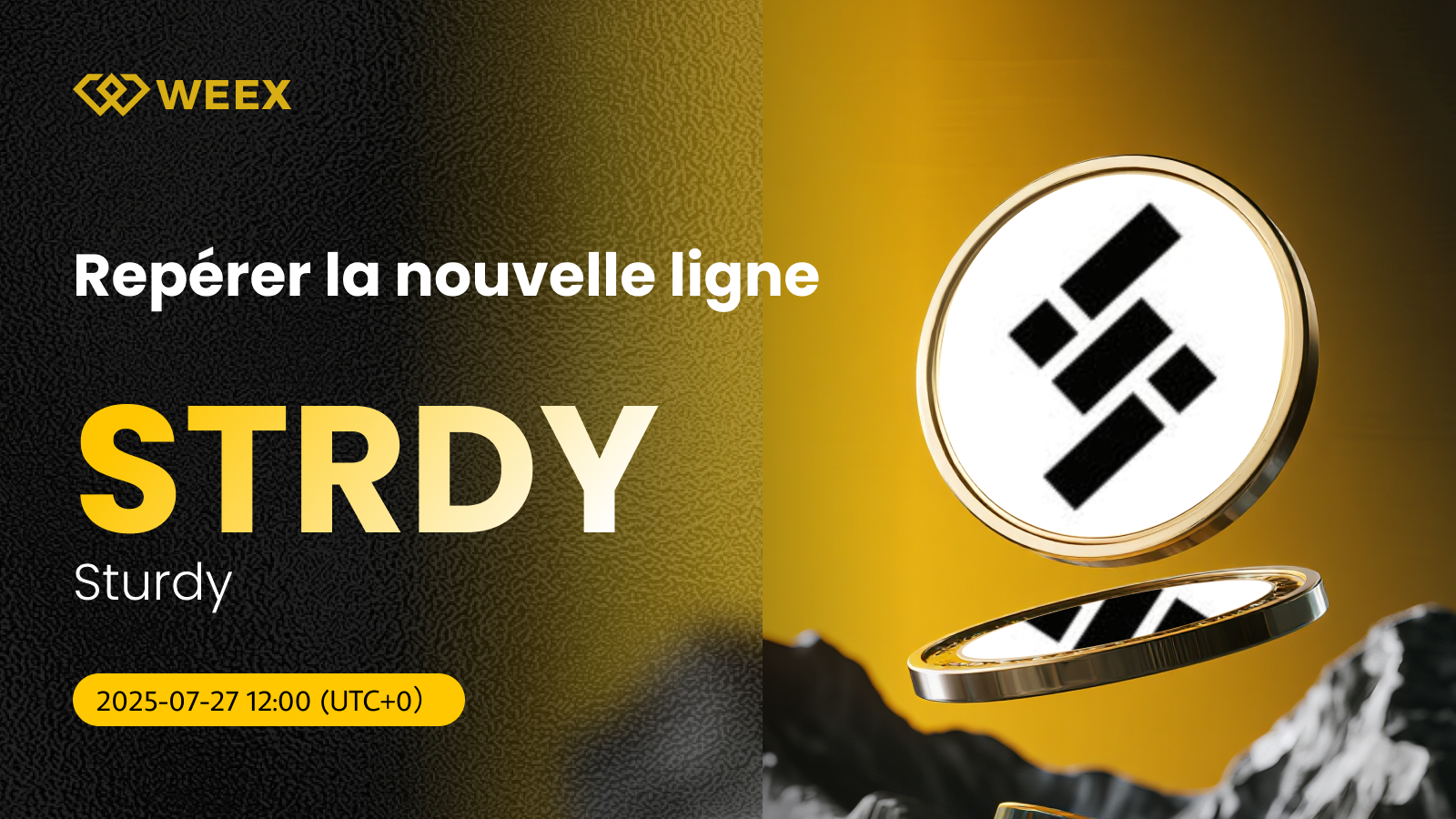 Nous sommes heureux d'annoncer que Sturdy (STRDY) est désormais officiellement disponible sur WEEX spot trading ! À partir de maintenant, vous pouvez échanger STRDY/USDT facilement sur la plateforme WEEX. Les détails sont les suivants :