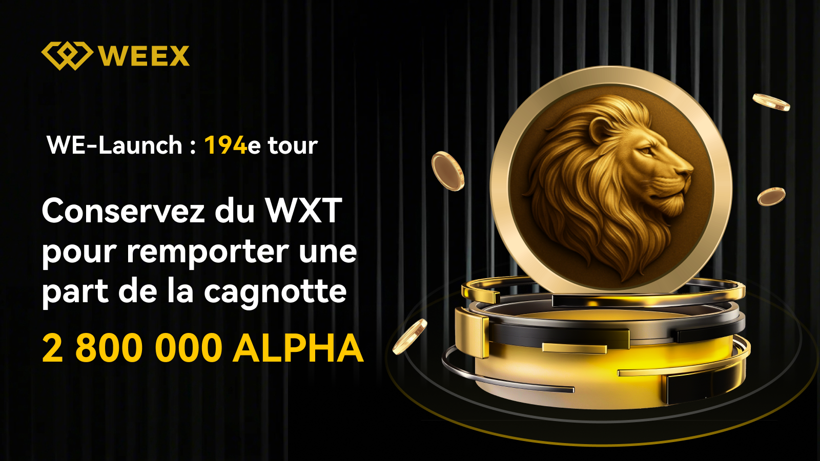 Engagez des WXT ou des ALPHA dans WE-Launch pendant la période de l'événement pour avoir une chance de partager 2 800 000 ALPHA gratuitement !