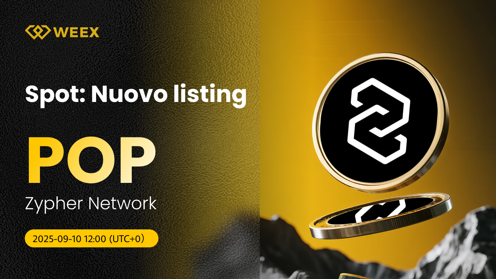 Siamo lieti di annunciare che Rete Zypher (POP) è ora ufficialmente disponibile sul mercato di trading spot di WEEX! D'ora in poi, puoi scambiare POP/USDT facilmente sulla piattaforma WEEX. Ecco ulteriori dettagli: