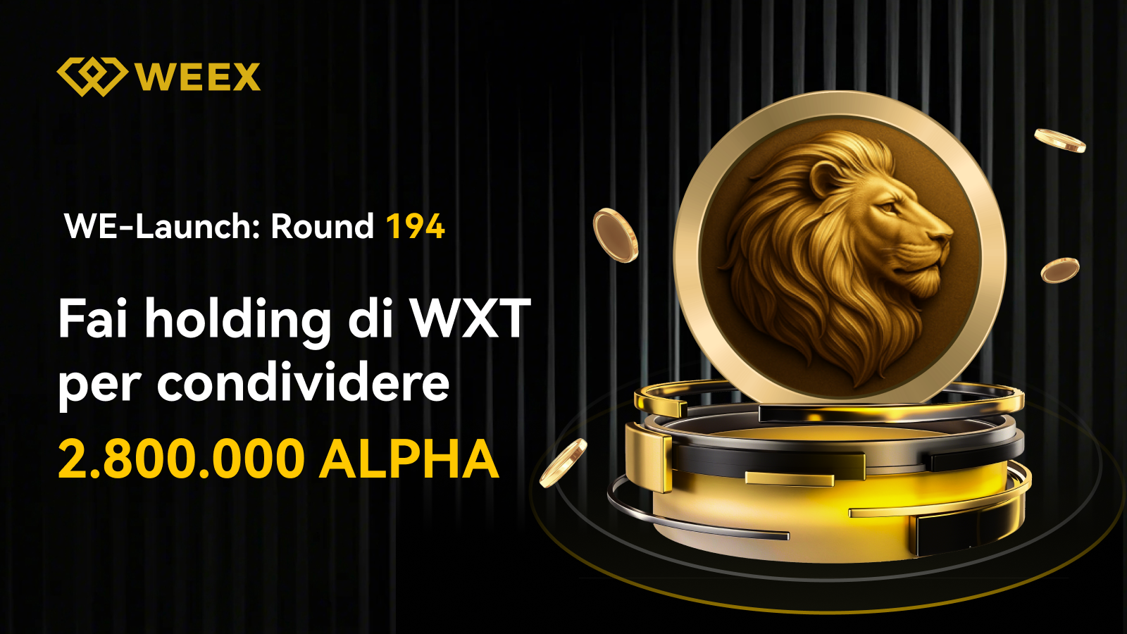 Commetti WXT o ALPHA in WE-Launch durante il periodo dell'evento per avere la possibilità di condividere 2.800.000 ALPHA gratuitamente!
