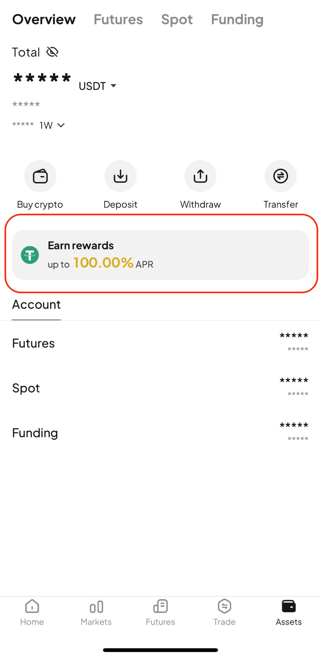 - Open the APP, go to the Assets page, and click on "Auto Earn".