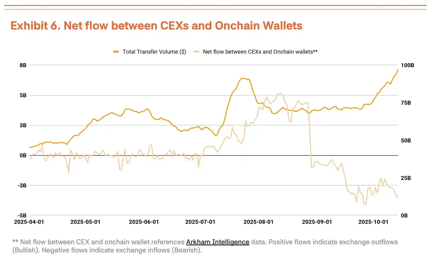 However, we cannot simply interpret the expansion of transaction volume as a positive signal. Recent inflows to centralized exchanges have increased, typically indicating holders are ready to sell (Chart 6). In a scenario where fundamental indicators like transaction count and active addresses have not improved, the increase in transaction volume more likely reflects short-term fund movement and selling pressure in a high-volatility environment, rather than an expansion of real demand.