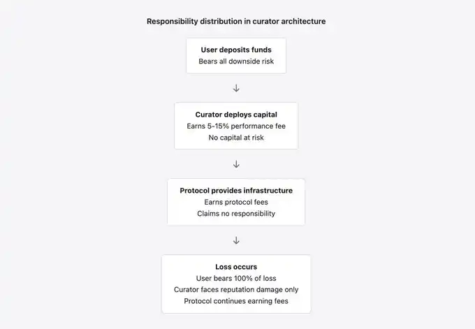 When banks or brokers manage client funds, they must meet capital requirements, regulatory obligations, fulfill fiduciary duties, and undergo regulatory scrutiny. In contrast, when a DeFi risk manager handles client funds, they only face market incentives, and these incentives reward asset accumulation and profit maximization, not risk management. Protocols supporting risk managers claim to be neutral infrastructure that earns fees from activities while denying responsibility for risks.