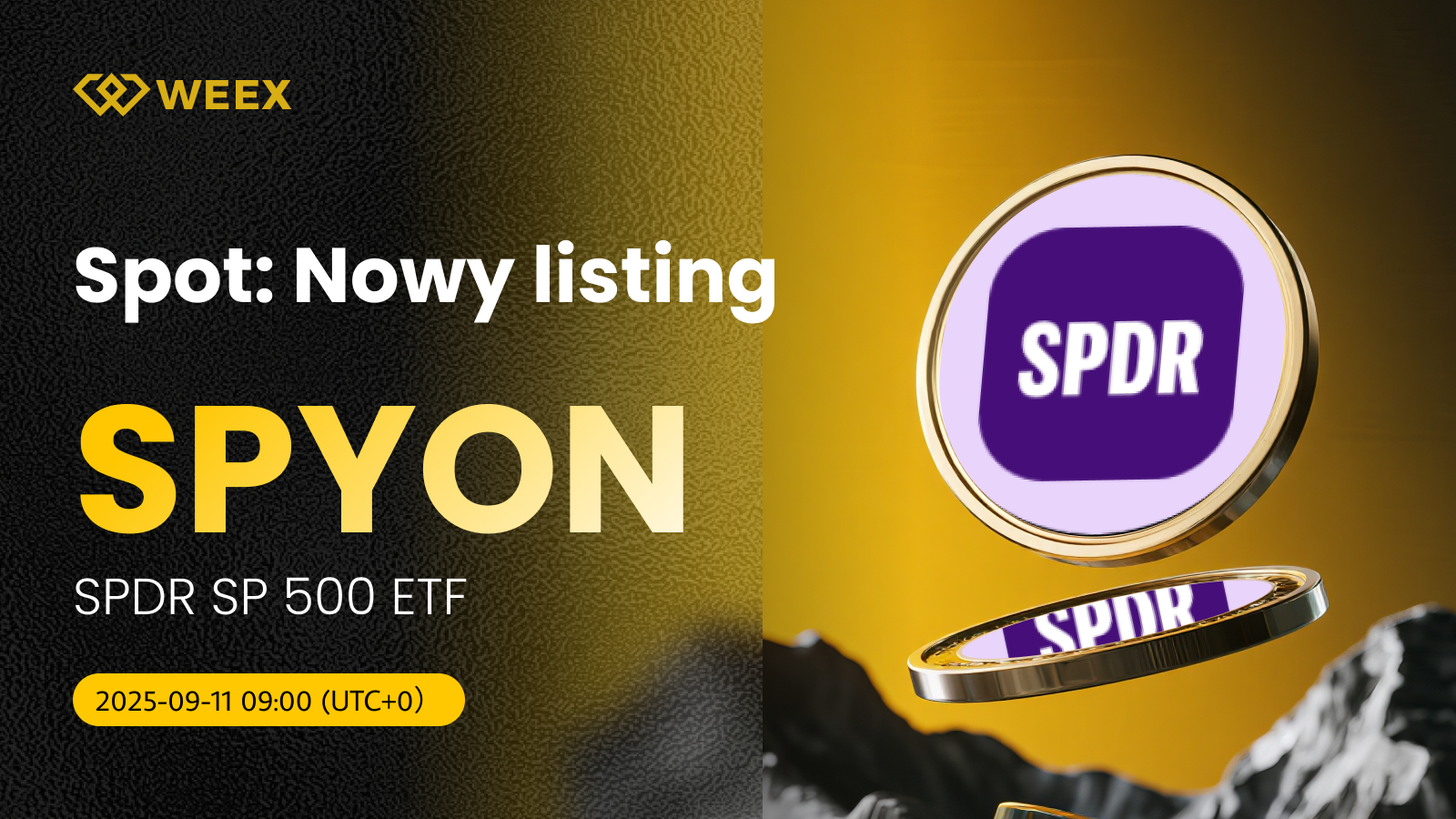 Z przyjemnością ogłaszamy, że SPDR SP 500 ETF (SPYON) jest teraz oficjalnie dostępny na rynku handlu spot na WEEX! Od teraz możesz łatwo handlować SPYON/USDT na platformie WEEX. Oto więcej szczegółów: