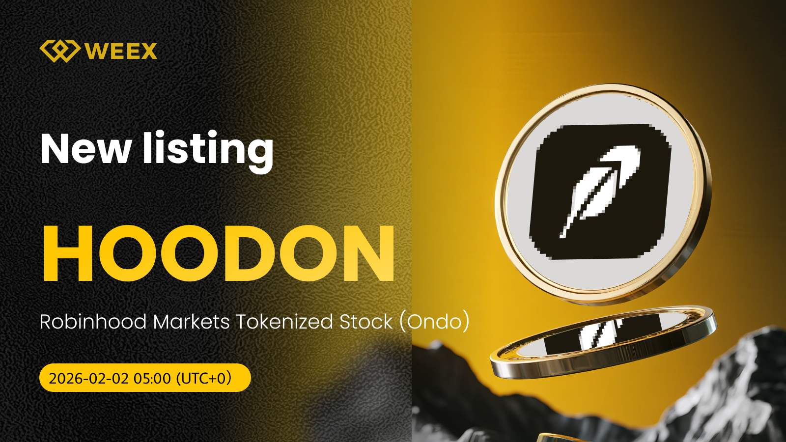 Robinhood Markets Tokenized Stock (Ondo) (HOODON) agora disponível na WEEX!
