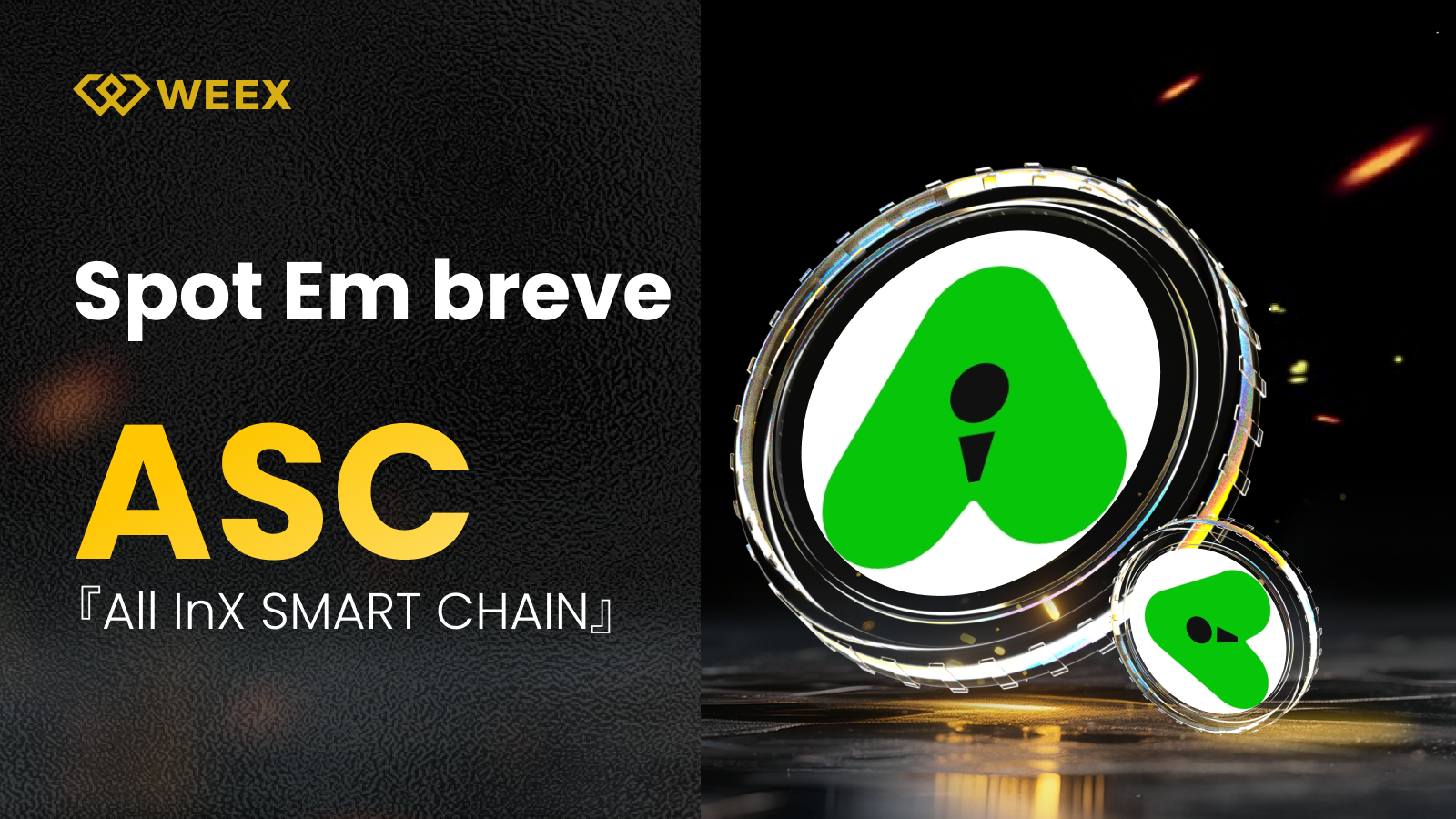 Temos o prazer de anunciar que All InX SMART CHAIN (ASC) estará disponível em breve no mercado de negociação à vista da WEEX. Fique atento ao próximo anúncio para mais detalhes!