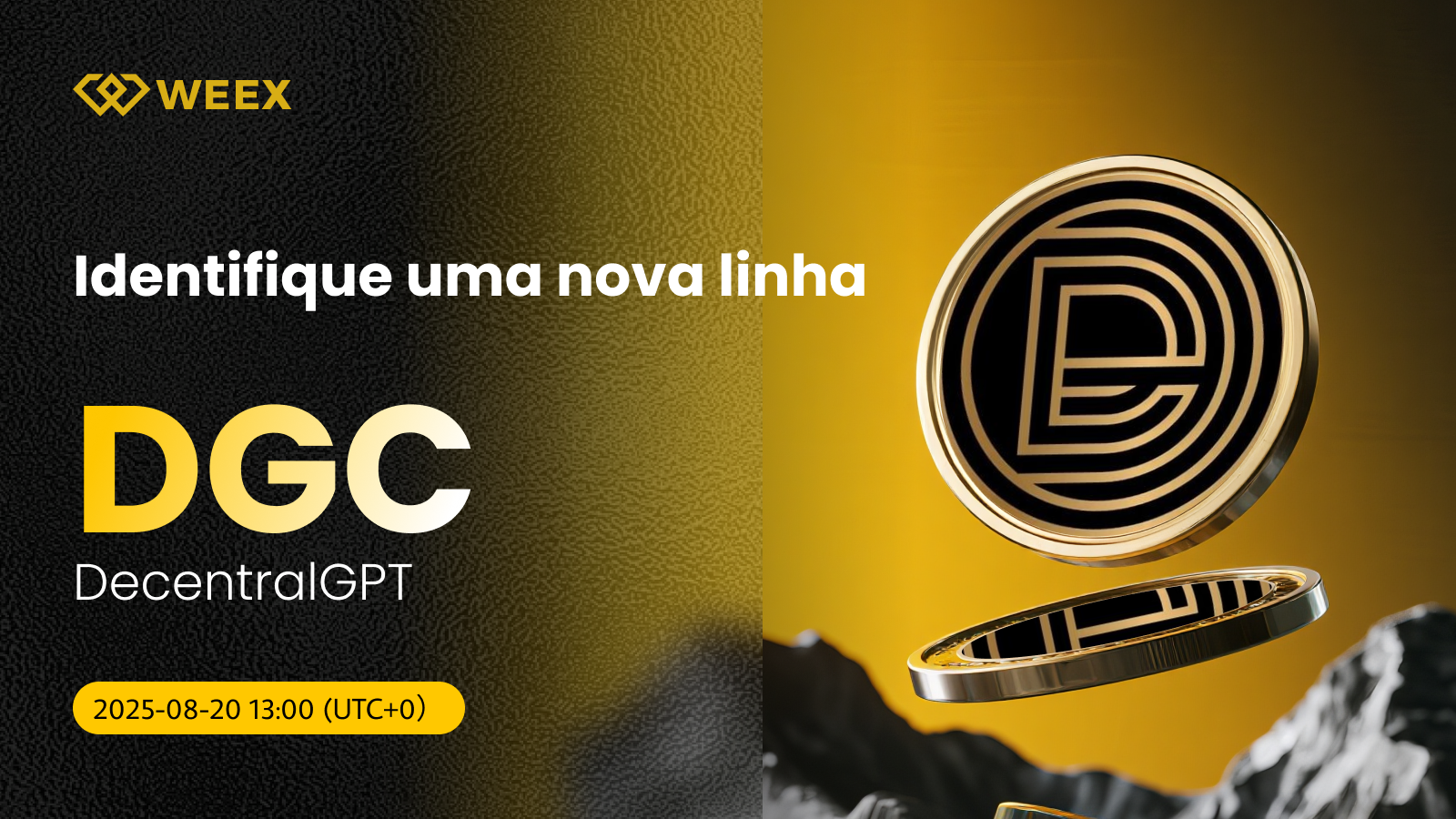 Temos o prazer de anunciar que DecentralGPT (DGC) já está oficialmente disponível para negociação spot na WEEX! A partir de agora, você pode negociar DGC/USDT facilmente na plataforma WEEX. Os detalhes são os seguintes: