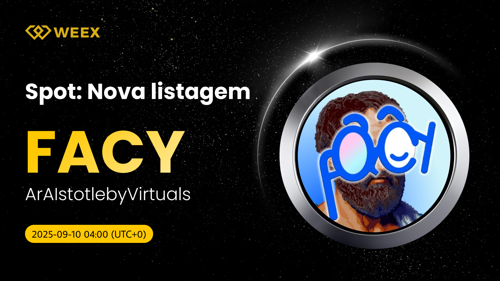 Temos o prazer de anunciar que ArAIstotlebyVirtuals (FACY) agora está oficialmente disponível no mercado de negociação spot da WEEX! A partir de agora, você pode negociar FACY/USDT facilmente na plataforma WEEX. Aqui estão mais detalhes: