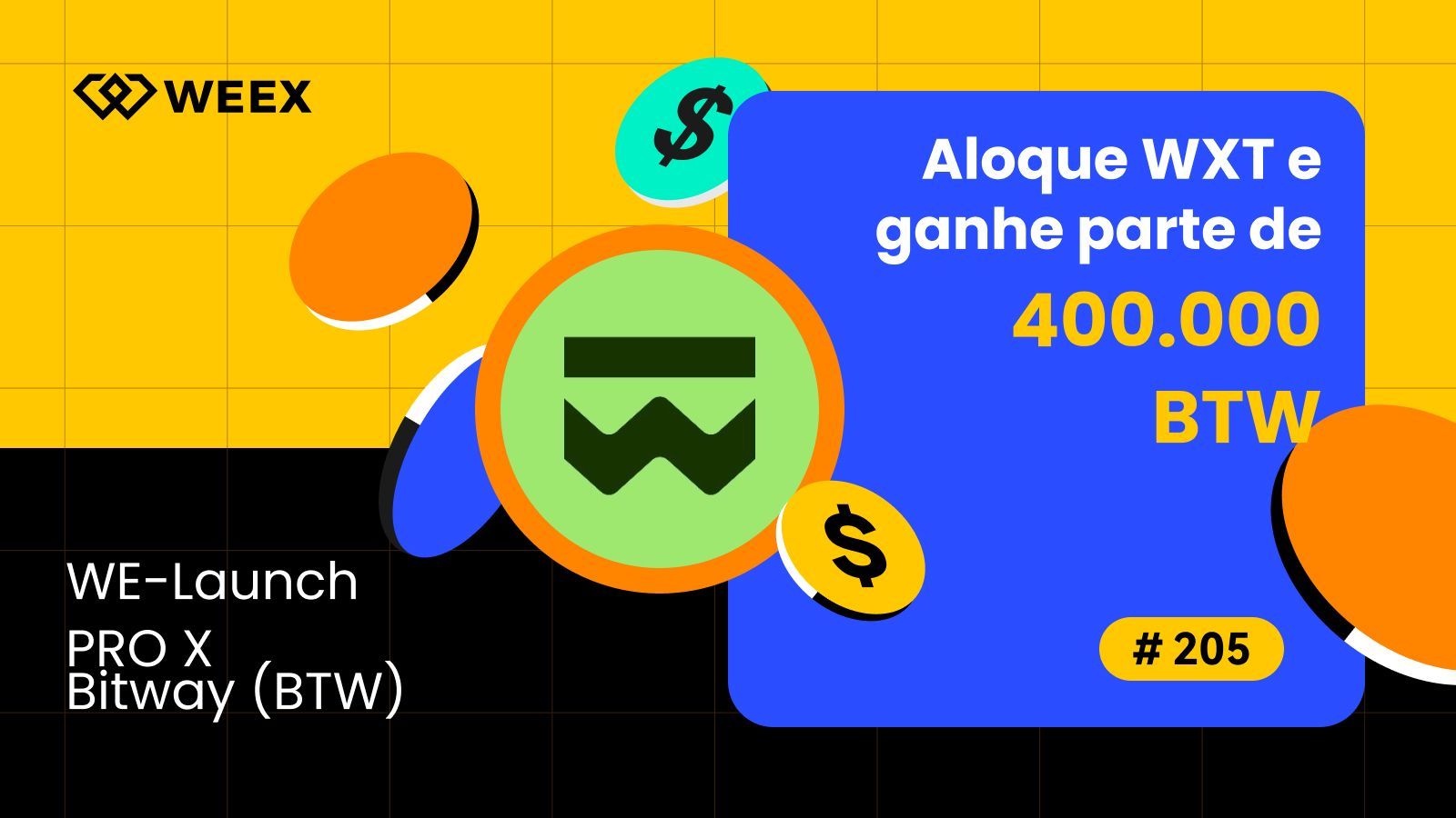 WEEX WE-Launch PRO – Bitway (BTW) Airdrop agora ao vivo! Comprometer WXT ou BTW para compartilhar 400,000 BTW. Dupla recompensa para participantes pela primeira vez!
