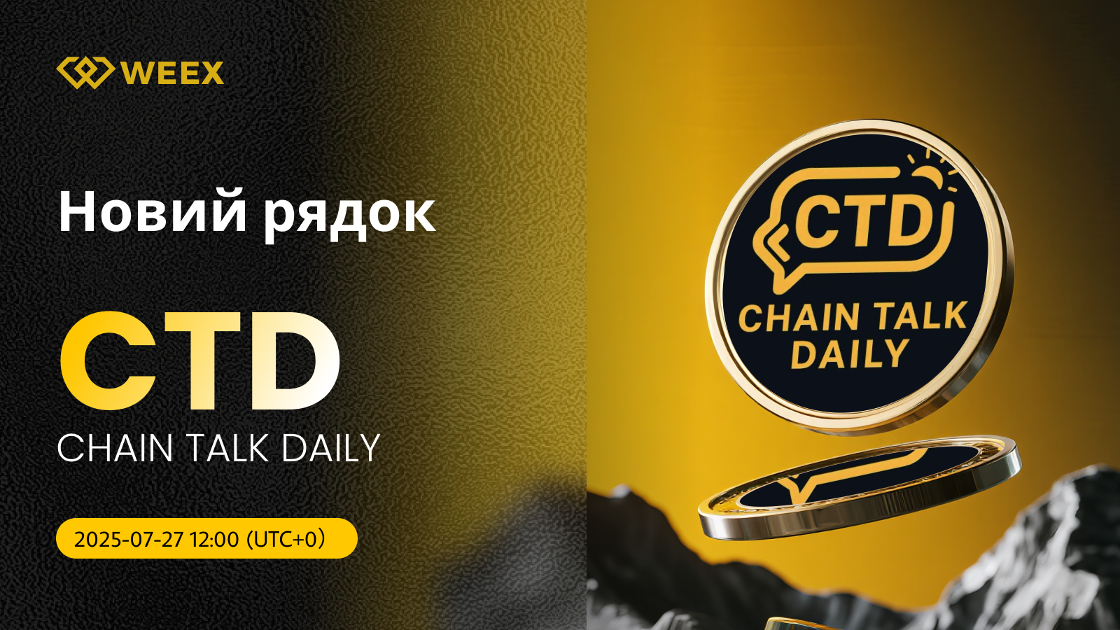 Ми раді повідомити, що CHAIN TALK DAILY (CTD) тепер офіційно доступний на спотовій біржі WEEX! Відтепер ви можете торгувати CTD/USDT на платформі WEEX. Деталі такі: