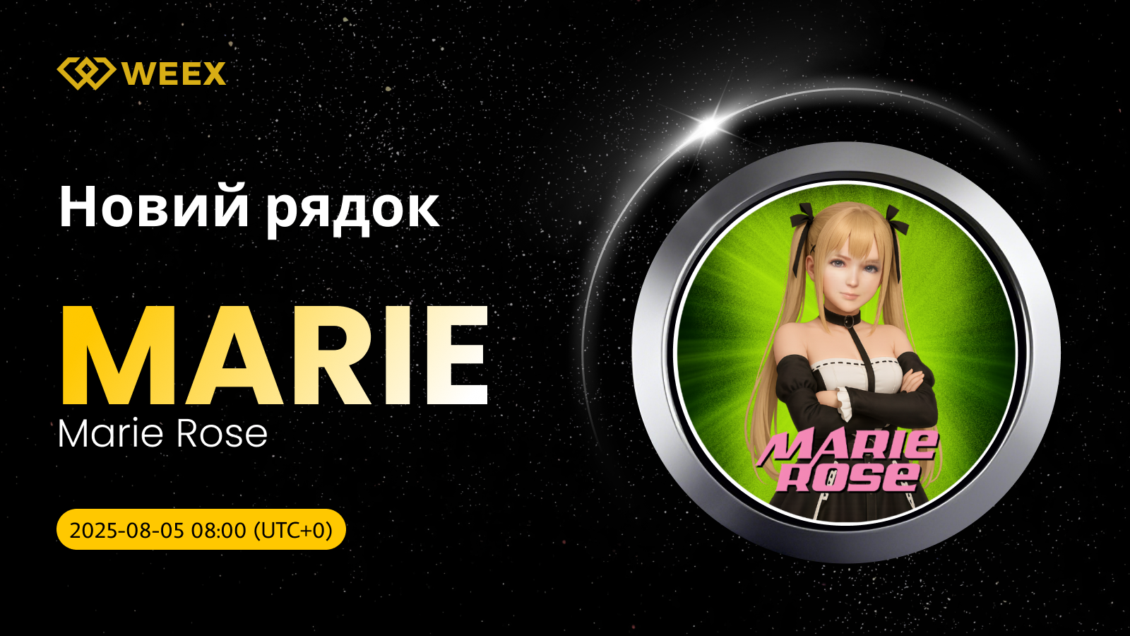 Ми раді оголосити, що Марі Роуз (MARIE) тепер офіційно доступна для спотової торгівлі на WEEX! Відтепер ви можете легко торгувати MARIE/USDT на платформі WEEX. Деталі такі: