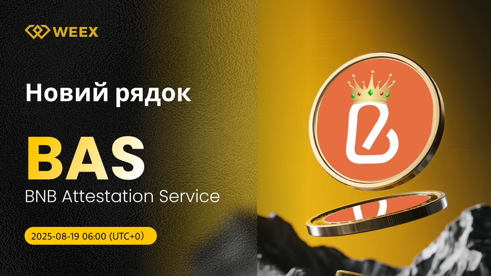 Новий список: Спотова торгівля BAS/USDT доступна на WEEX з 19 серпня!