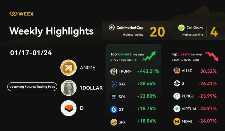 WEEX ranked #20 on CoinMarketCap and #4 on CoinGecko, introduced new trading pairs, launched Lunar New Year promotions, and highlighted top market gainers, strengthening its position in crypto trading.