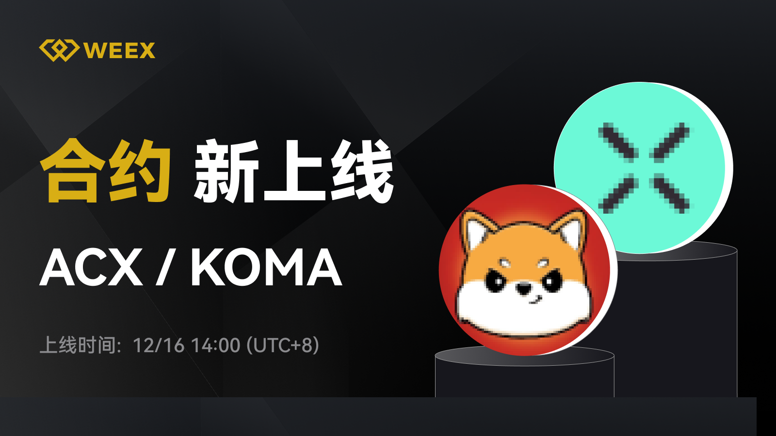 WEEX合约将上线ACX、KOMA U本位合约 - 12/16 14:00 UTC+8