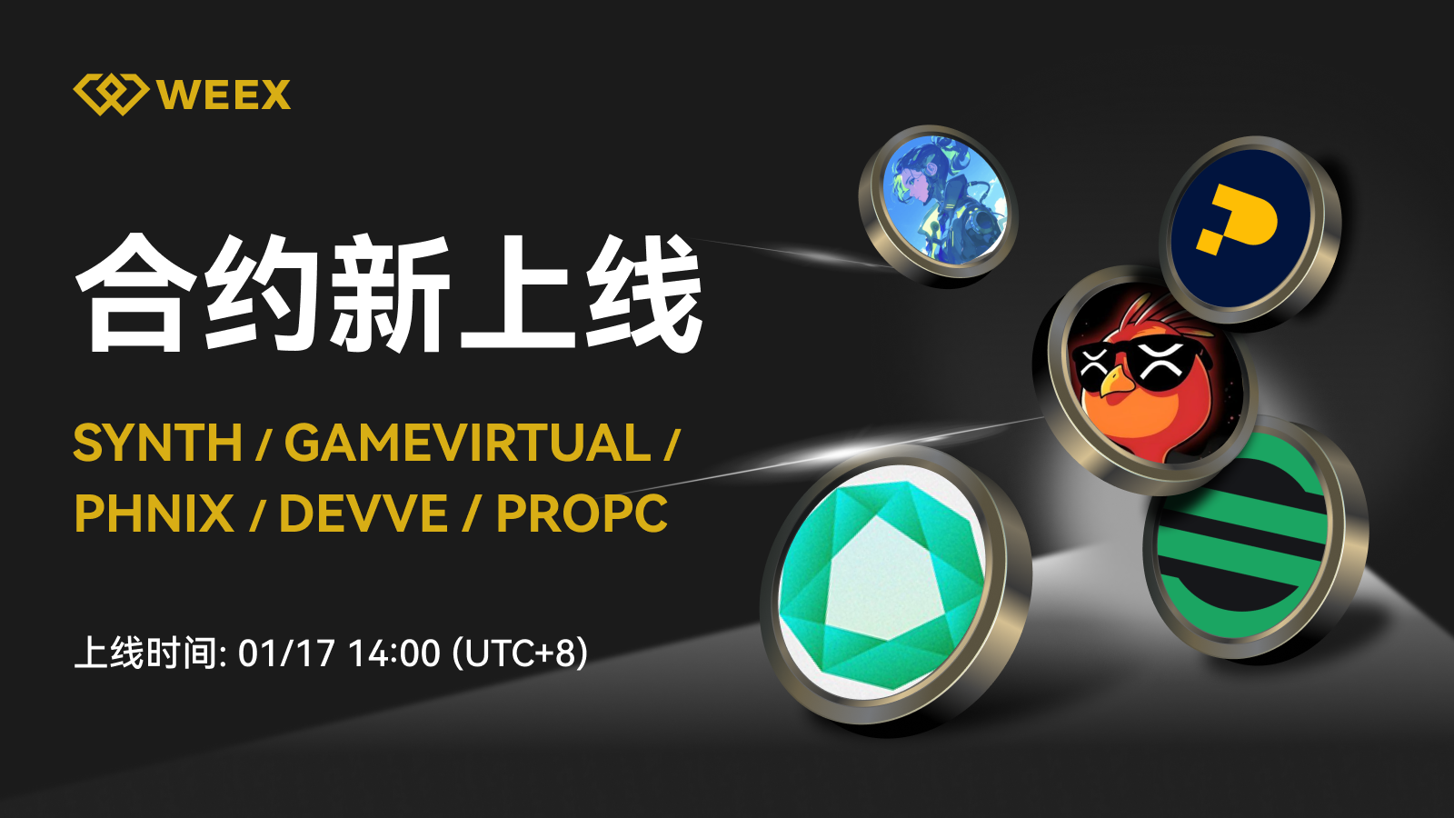 WEEX合约将于2025年1月17日14:00 [UTC+8]上线SYNTH、GAMEVIRTUAL、PHNIX、DEVVE、PROPC U本位合约。