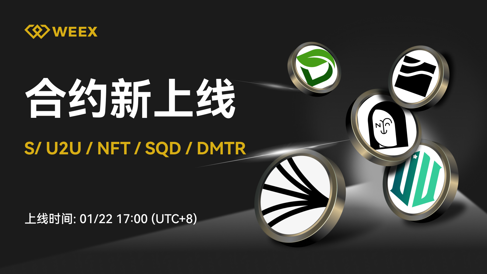 WEEX合约将上线S、U2U、NFT、SQD、DMTR U本位合约 - 1/22 17:00 UTC+8