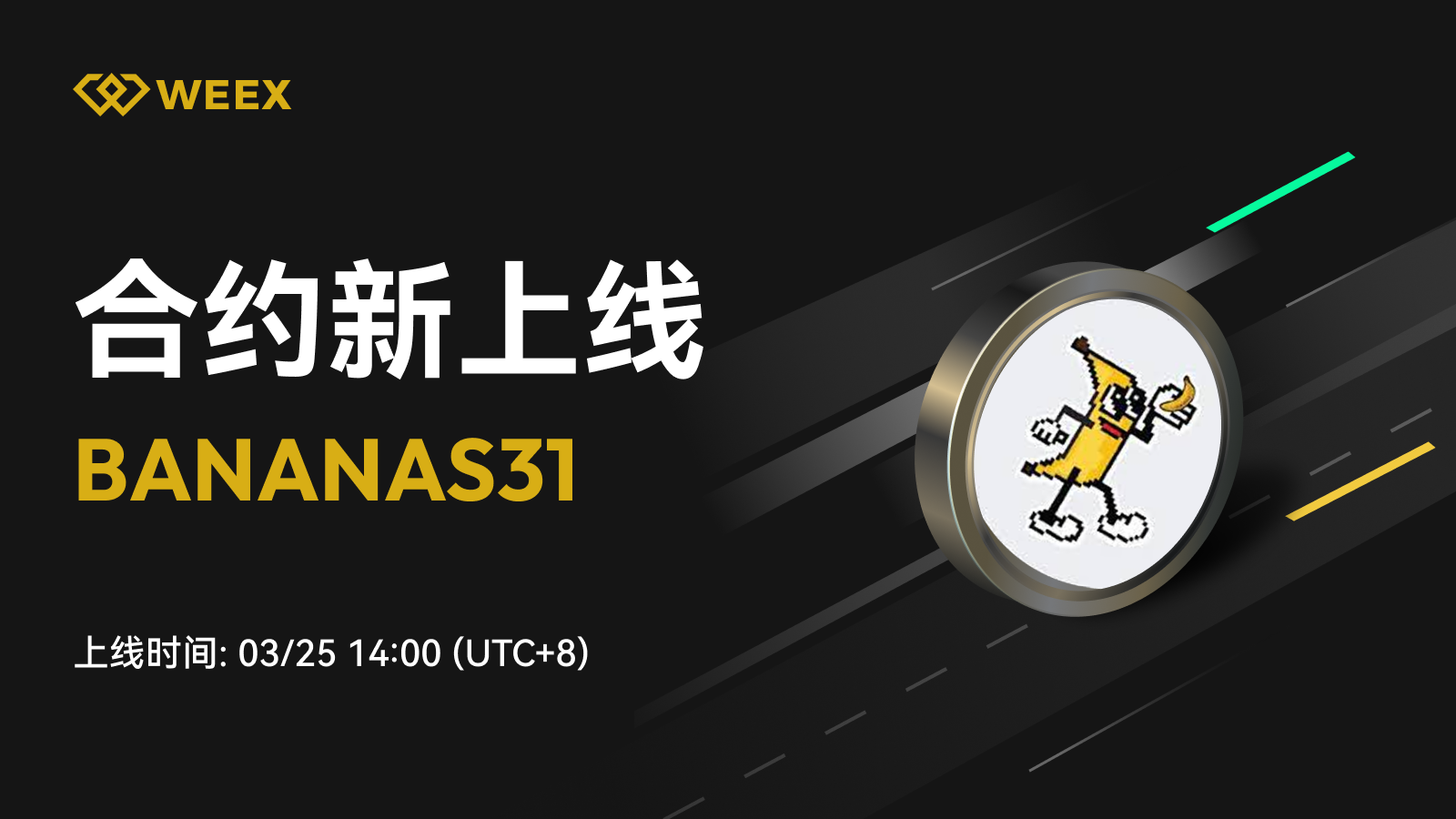 我们很高兴的宣布,WEEX合约将于2025年3月25日14:00 [UTC+8]上线Banana(BANANAS31) U本位合约。