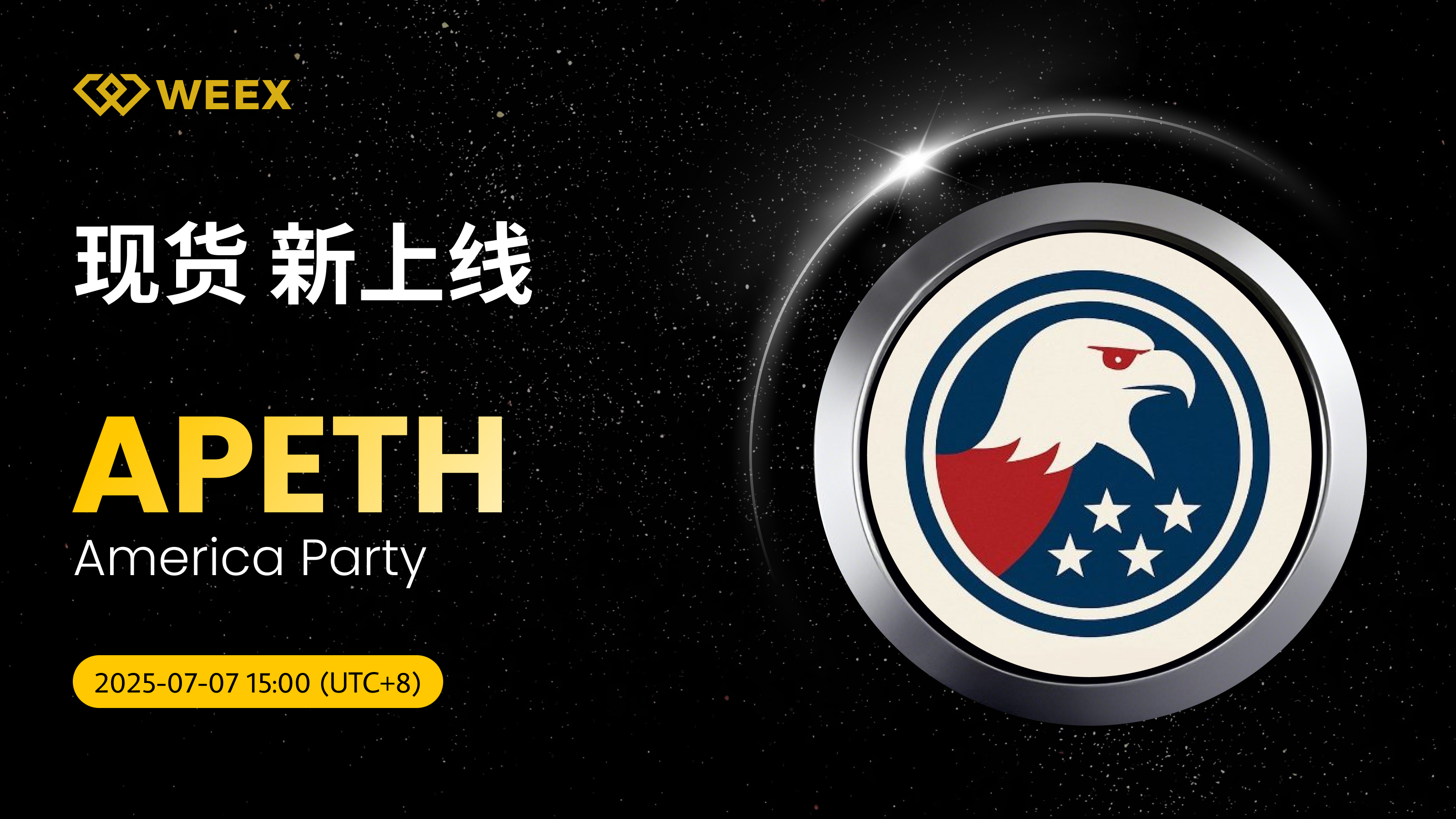 我们很高兴地宣布 America Party (APETH) 现已正式登陆WEEX现货交易区!即日起,您可在WEEX平台进行 APETH/USDT交易,详情如下: