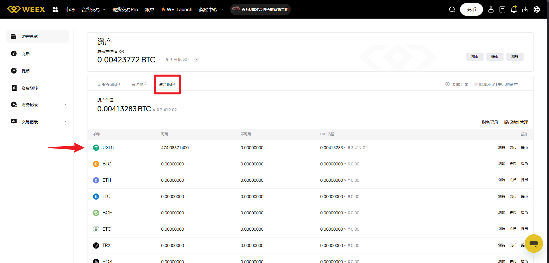 - 您可直接前往【资金账户】查看购买的加密资产。