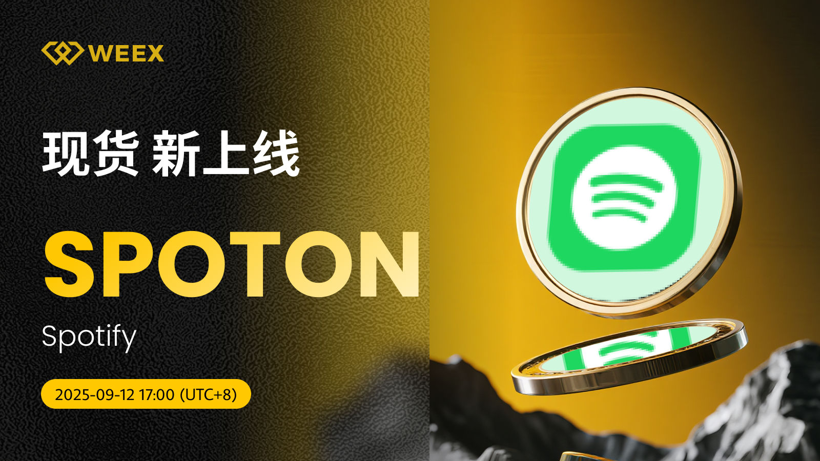 我们很高兴地宣布 Spotify (SPOTON) 现已正式登陆WEEX现货交易区!即日起,您可在WEEX平台进行 SPOTON/USDT交易,详情如下: