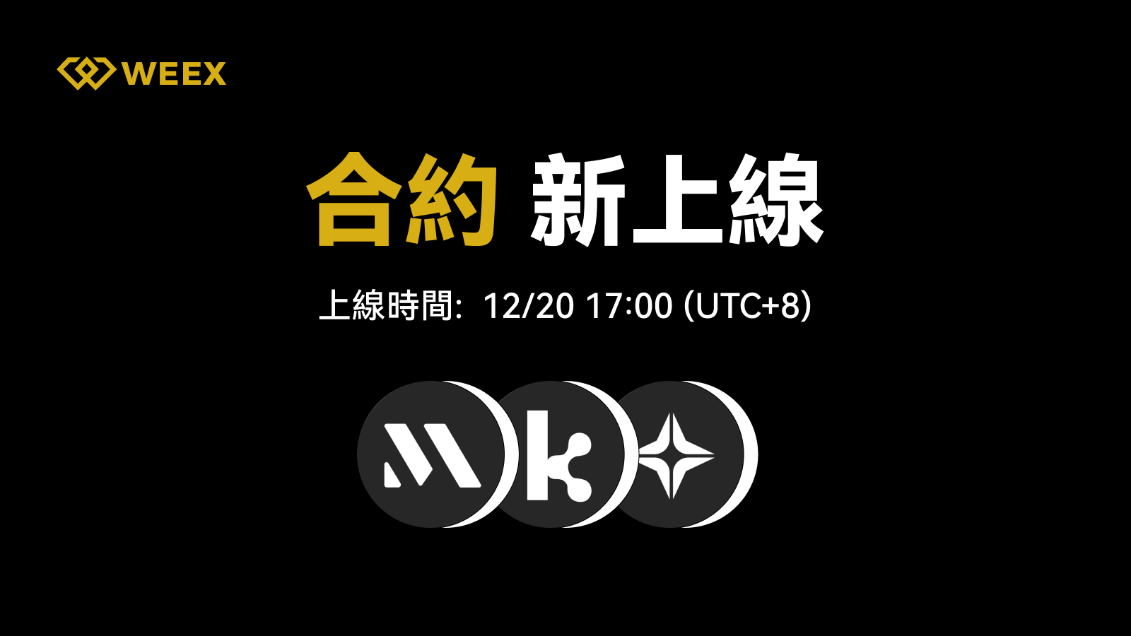 WEEX合约将上线LUMIA、KIMA、MPLX U本位合约 - 12/20 17:00 UTC+8