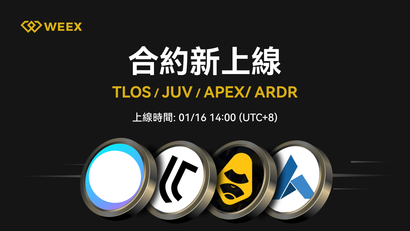 WEEX合约将上线TLOS、JUV、APEX、ARDR U本位合约 - 1/15 14:00 UTC+8