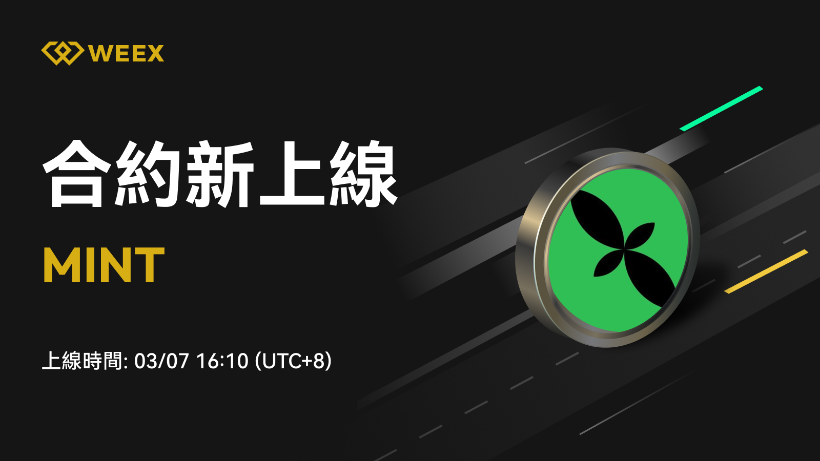WEEX合約將上線MINT U本位合約 - 3/7 16:10 UTC+8