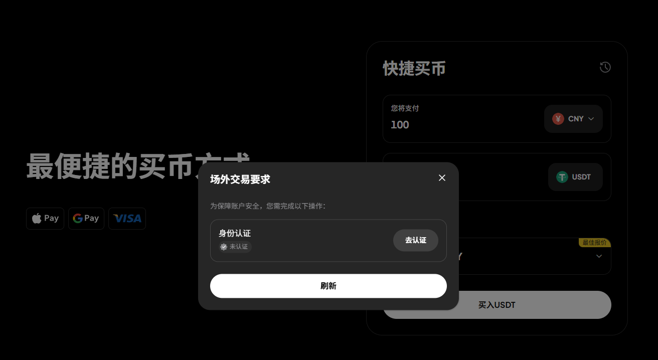 1.如果未進行身份驗證或買賣幣許可權申請,則進入第四步
