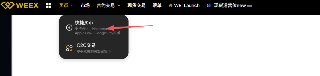 第一步:進入官網選擇導航欄中 【買幣】 ,點擊 【快捷買幣】,進入頁面