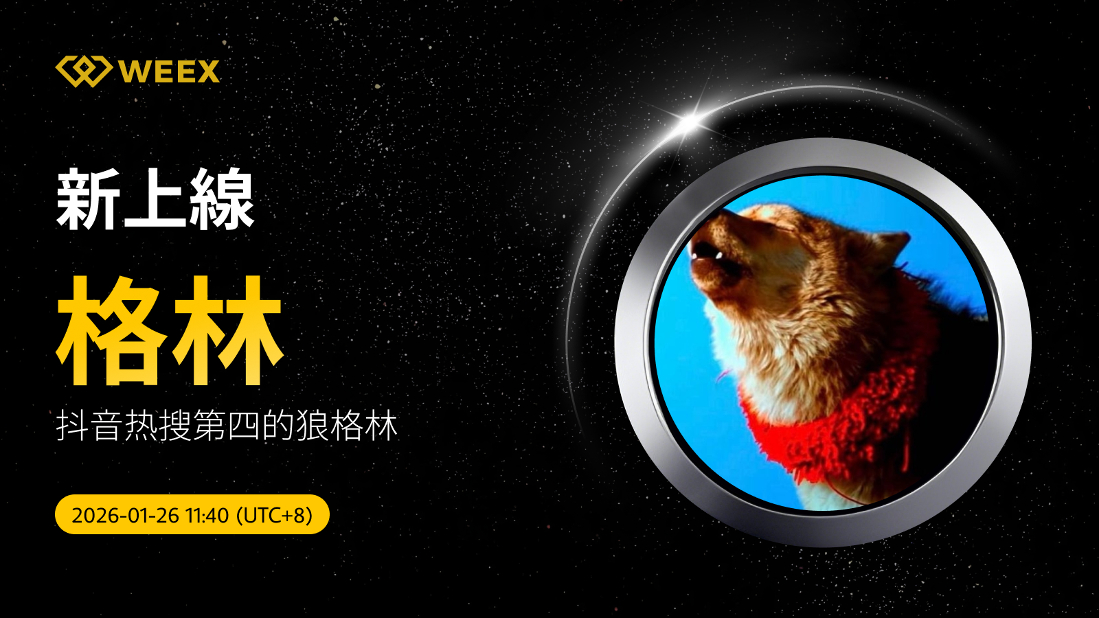 抖音热搜第四的狼格林 (格林) 現已上線WEEX!