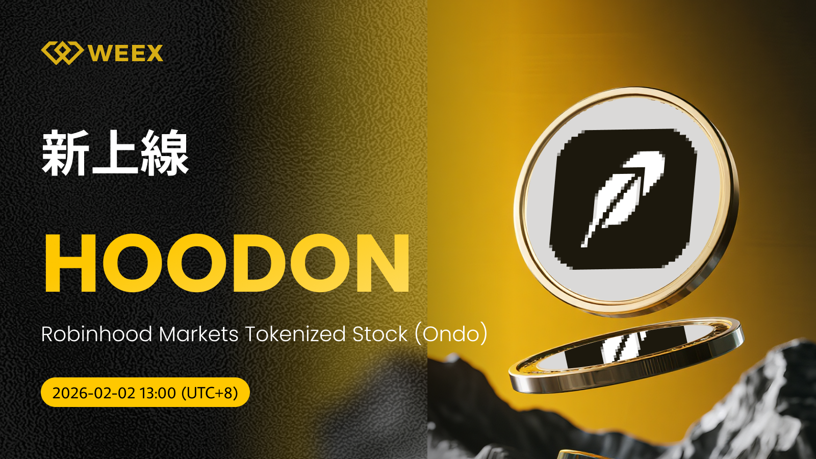 Robinhood Markets Tokenized Stock (Ondo) (HOODON) 現已上線WEEX!