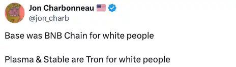 一段時間前,我刷到 Jon Charbonneau 的這則推文時忍不住笑了。當 Base 被稱作「白人的 BNB Chain」,這個調侃背後到底在說什麼?